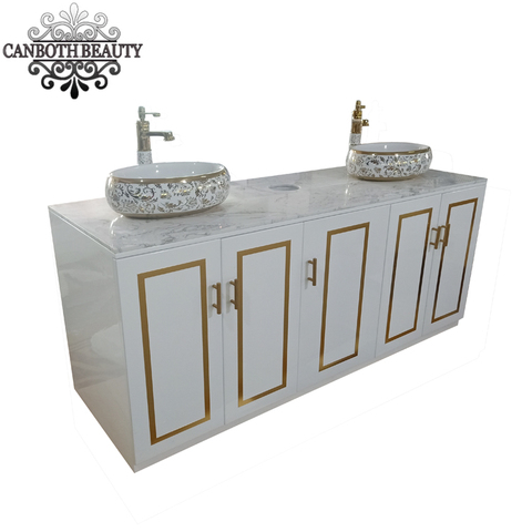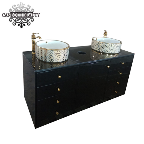 Nero salone doppio mobile lavello con rubinetto oro CB-CF015